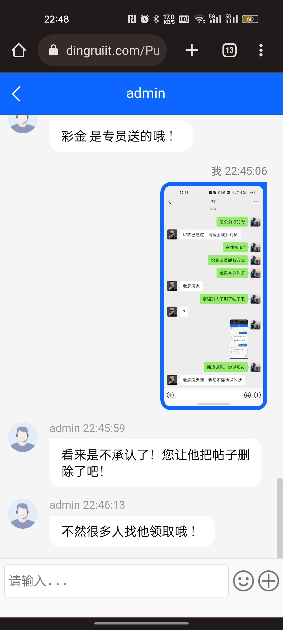 你找在线客服发论坛截图干你妈呢?论坛给你送的?我他妈没说电话特邀吗?你截图你妈逼论坛呢