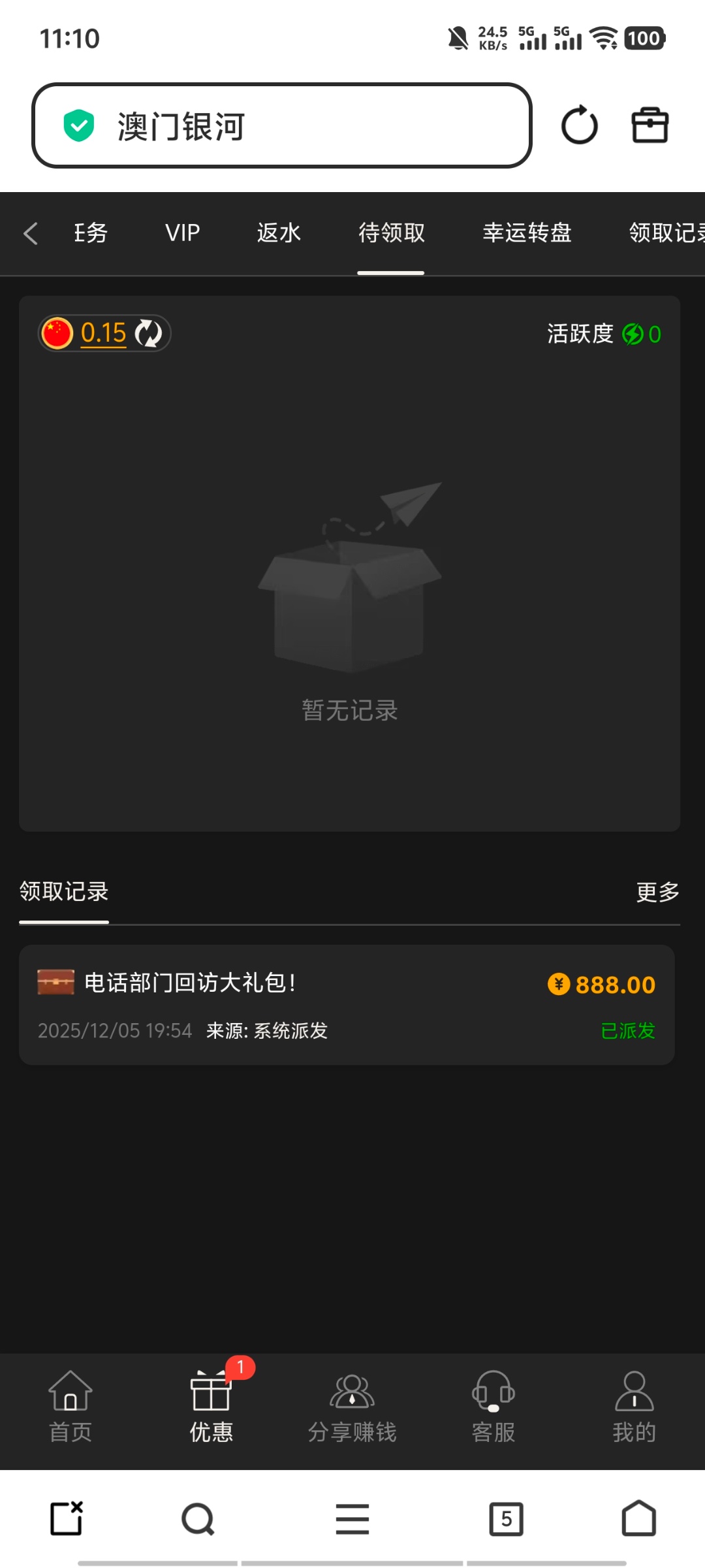 这个从来没送过我。我也冲过几百,毛都没有