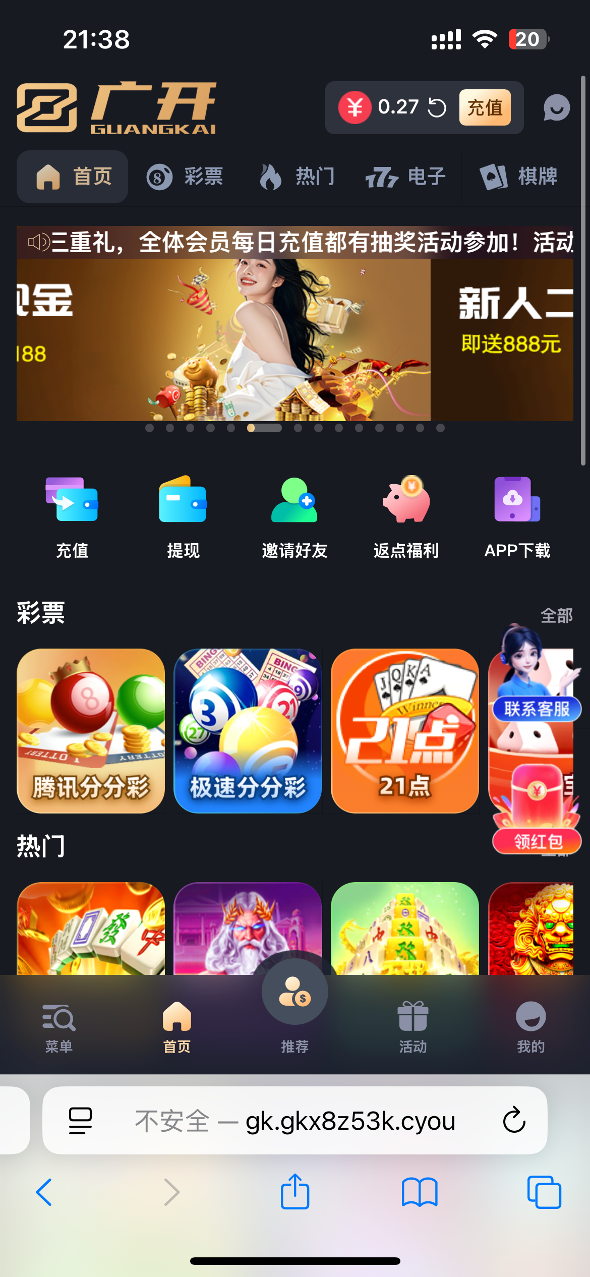 今天在某个交流群里聊天看见的链接,然后就去注册了,过了一个多小时给我打电话说送38,打够了以后让我充值同等金额,我就想问下这平台靠谱不,能不能充啊,感觉像黑台