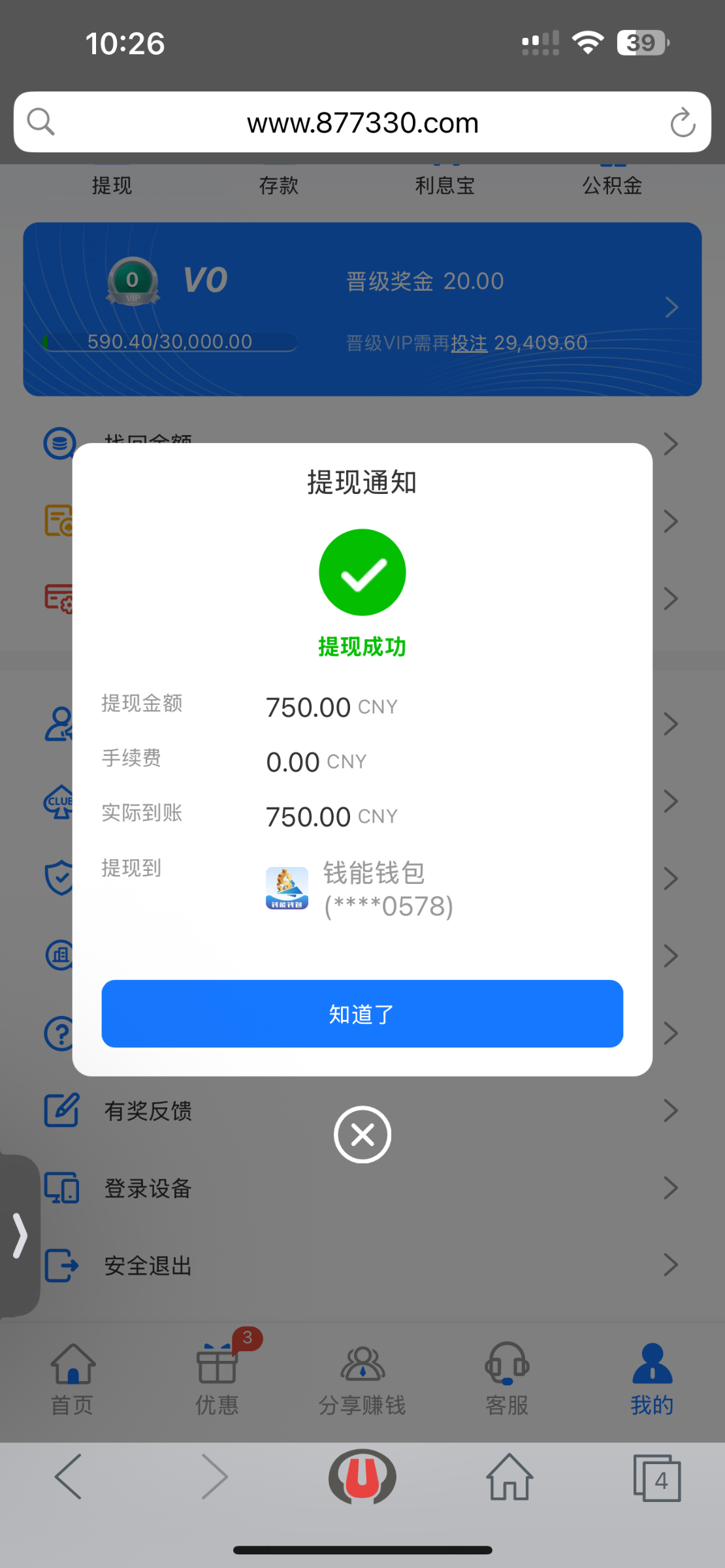 半个小时了,显示提现成功,就是没到账